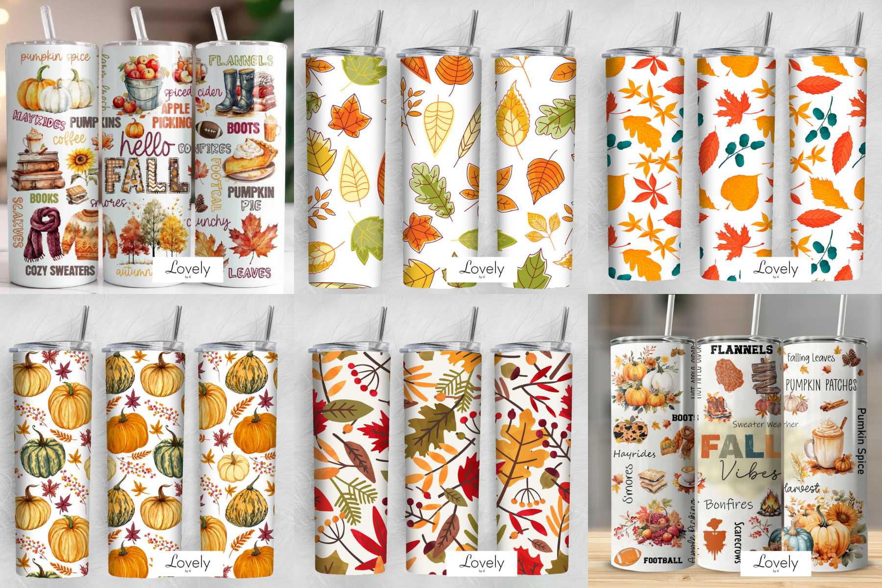 6pcs, 1 design each, 20oz insulated stainless steel skinny tumbler